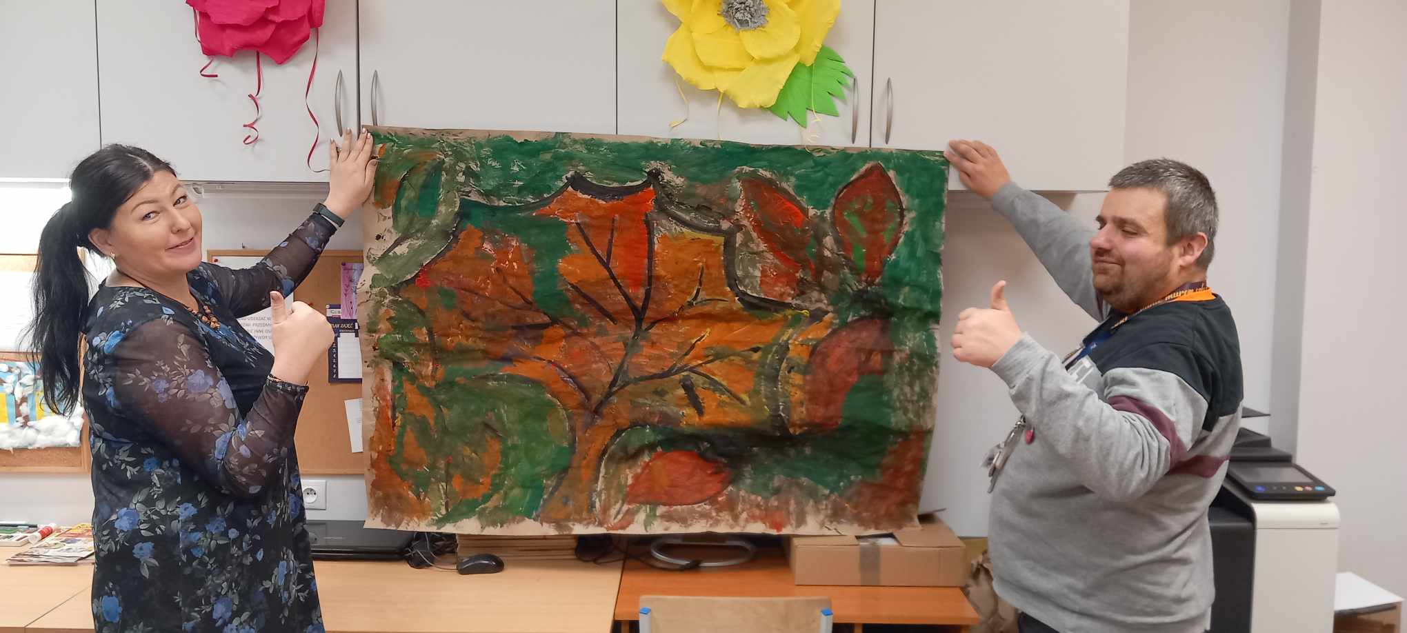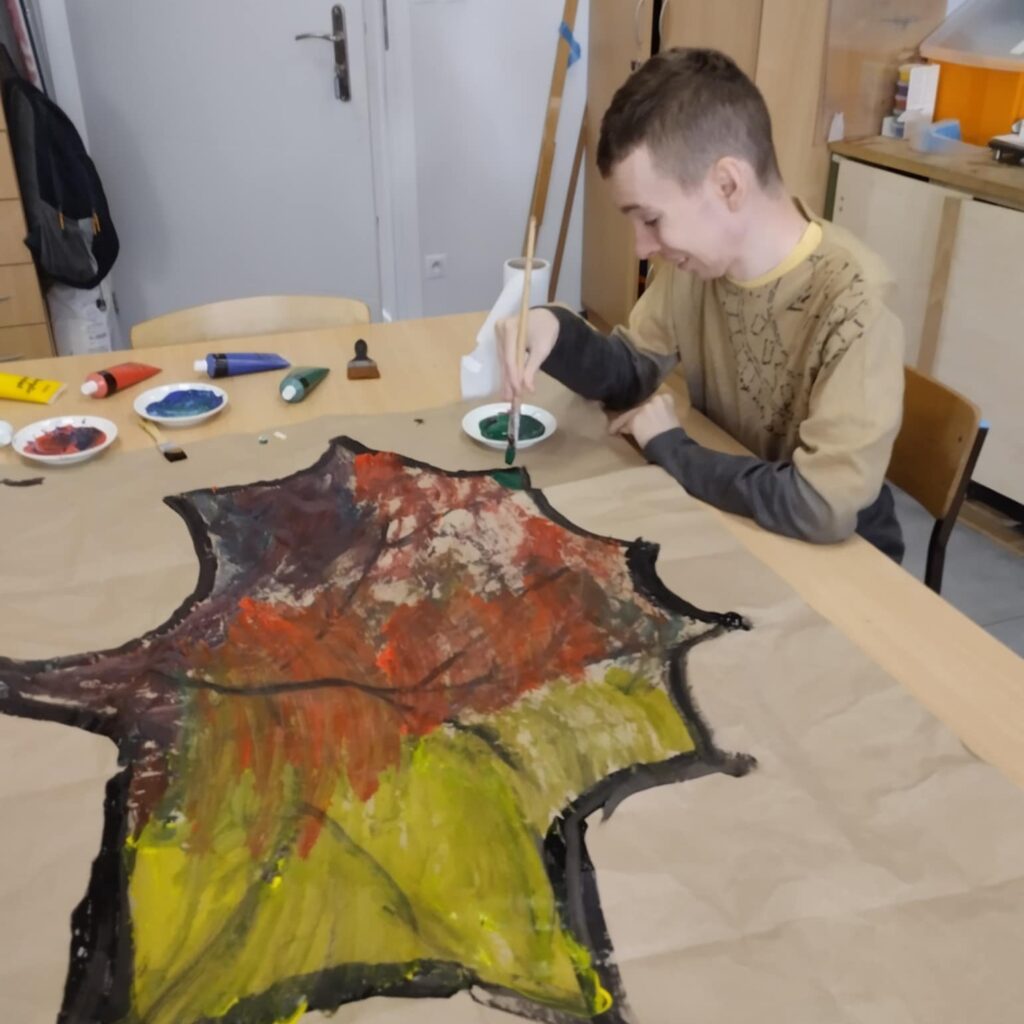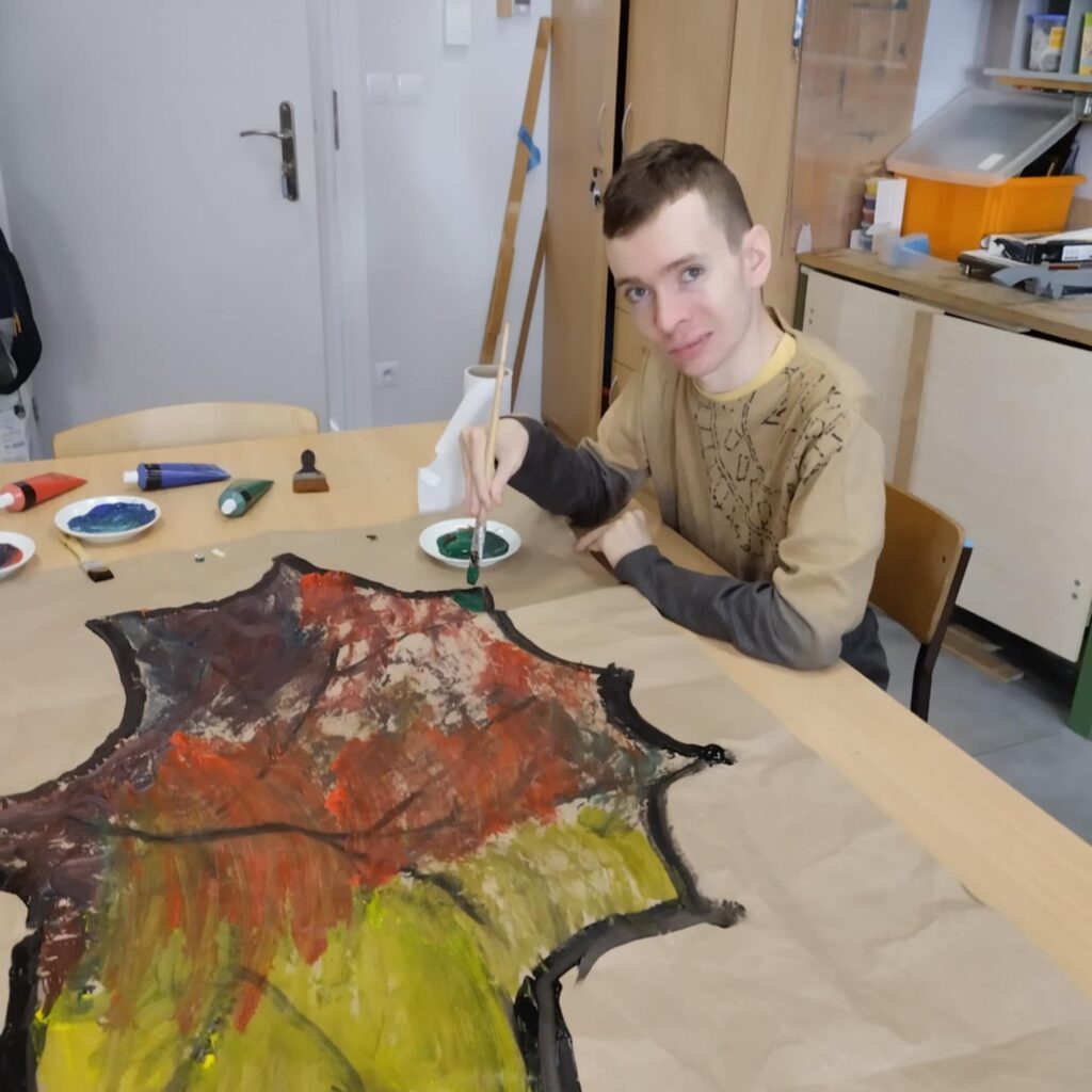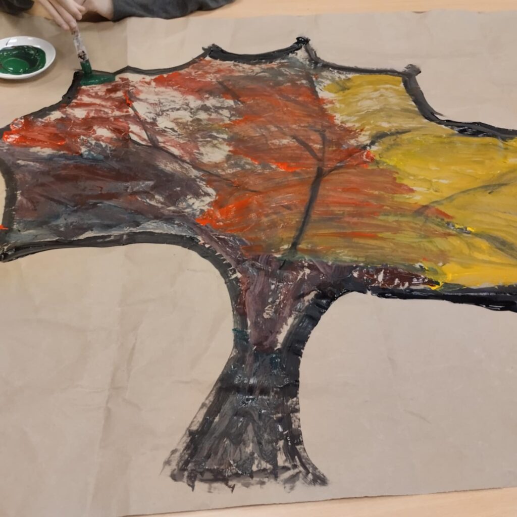 Podczas wizyty, w pracowni, oddaliśmy się tworzeniu jesiennej pracy plastycznej. Inspiracją były złote liście, kasztany i kolorowe barwy tej pięknej pory roku. 🍁🍂