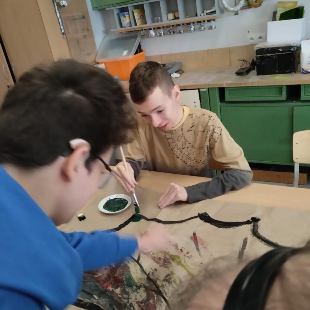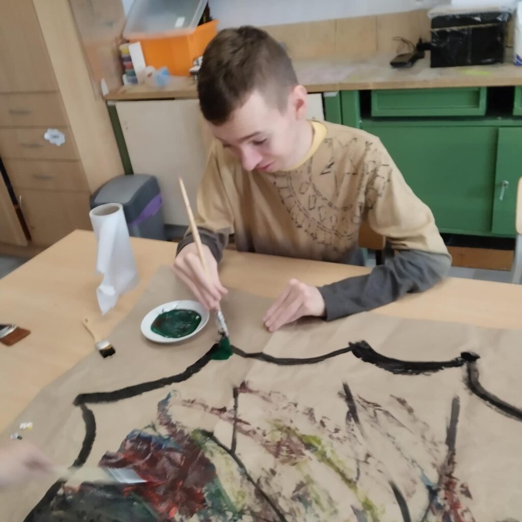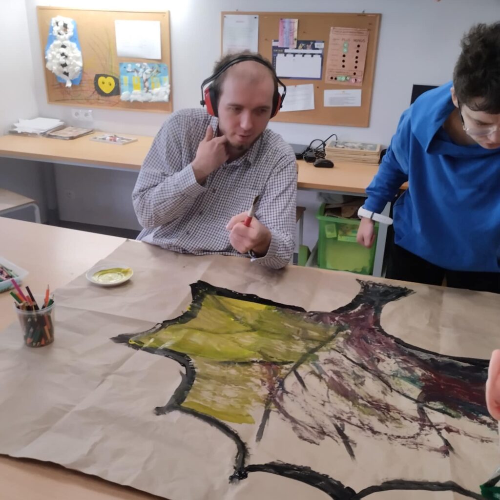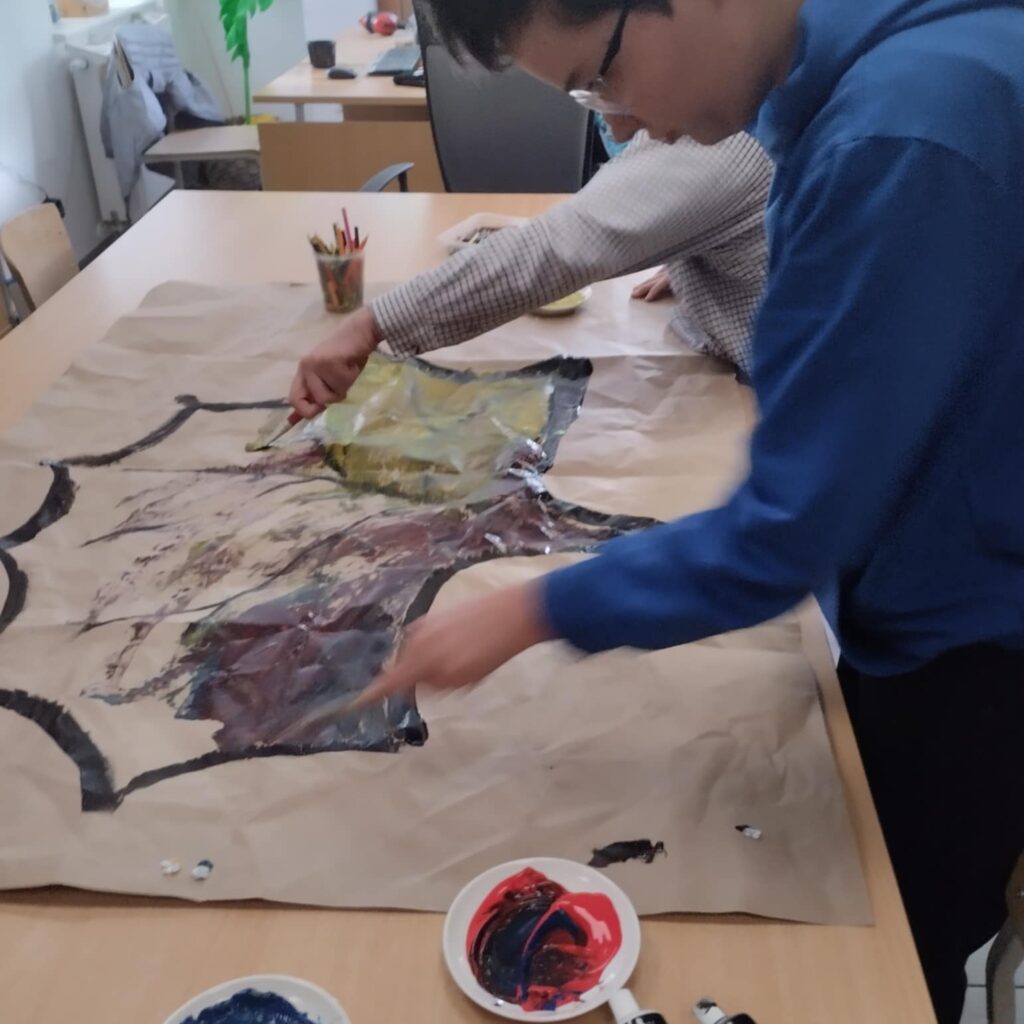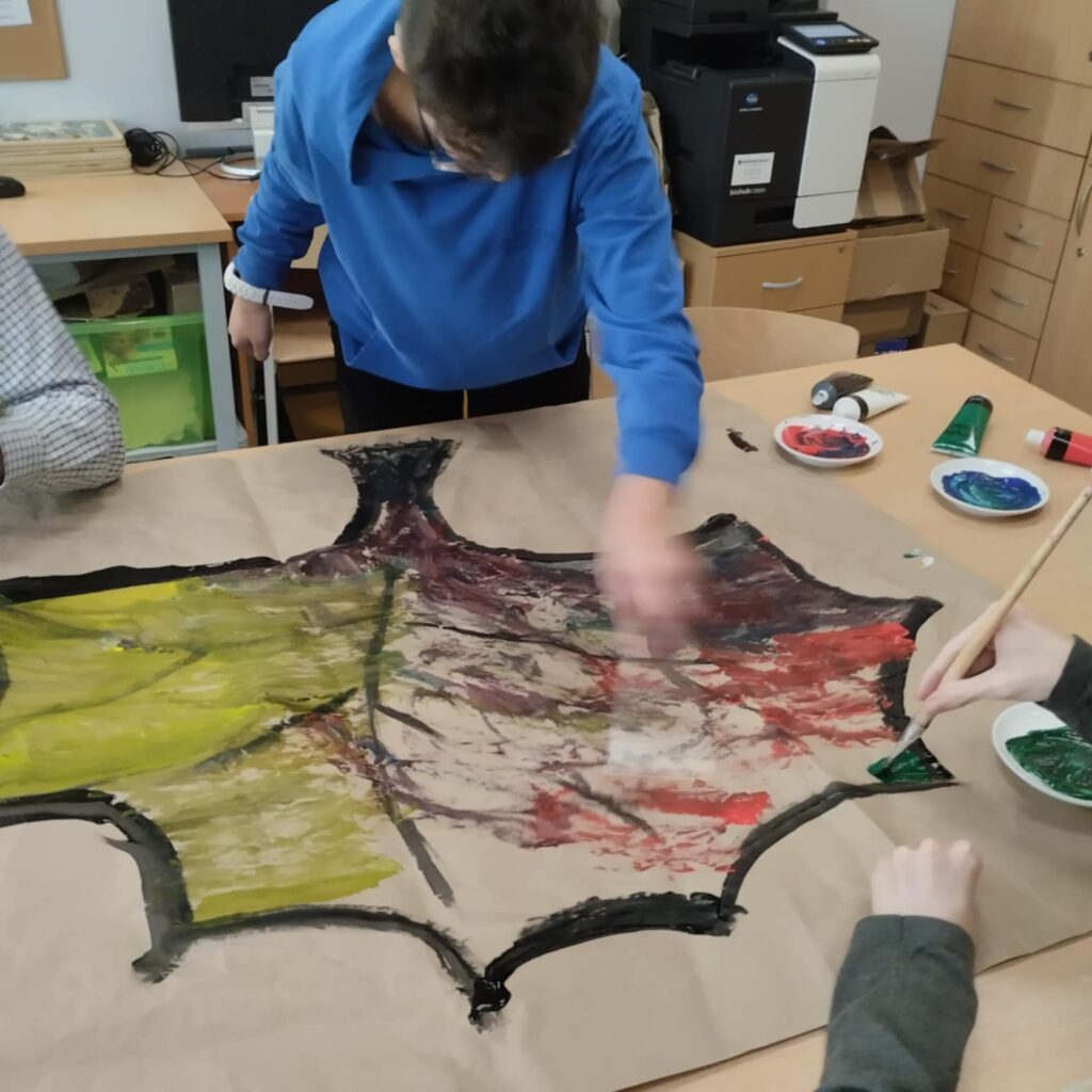 Podczas wizyty, w pracowni, oddaliśmy się tworzeniu jesiennej pracy plastycznej. Inspiracją były złote liście, kasztany i kolorowe barwy tej pięknej pory roku. 🍁🍂